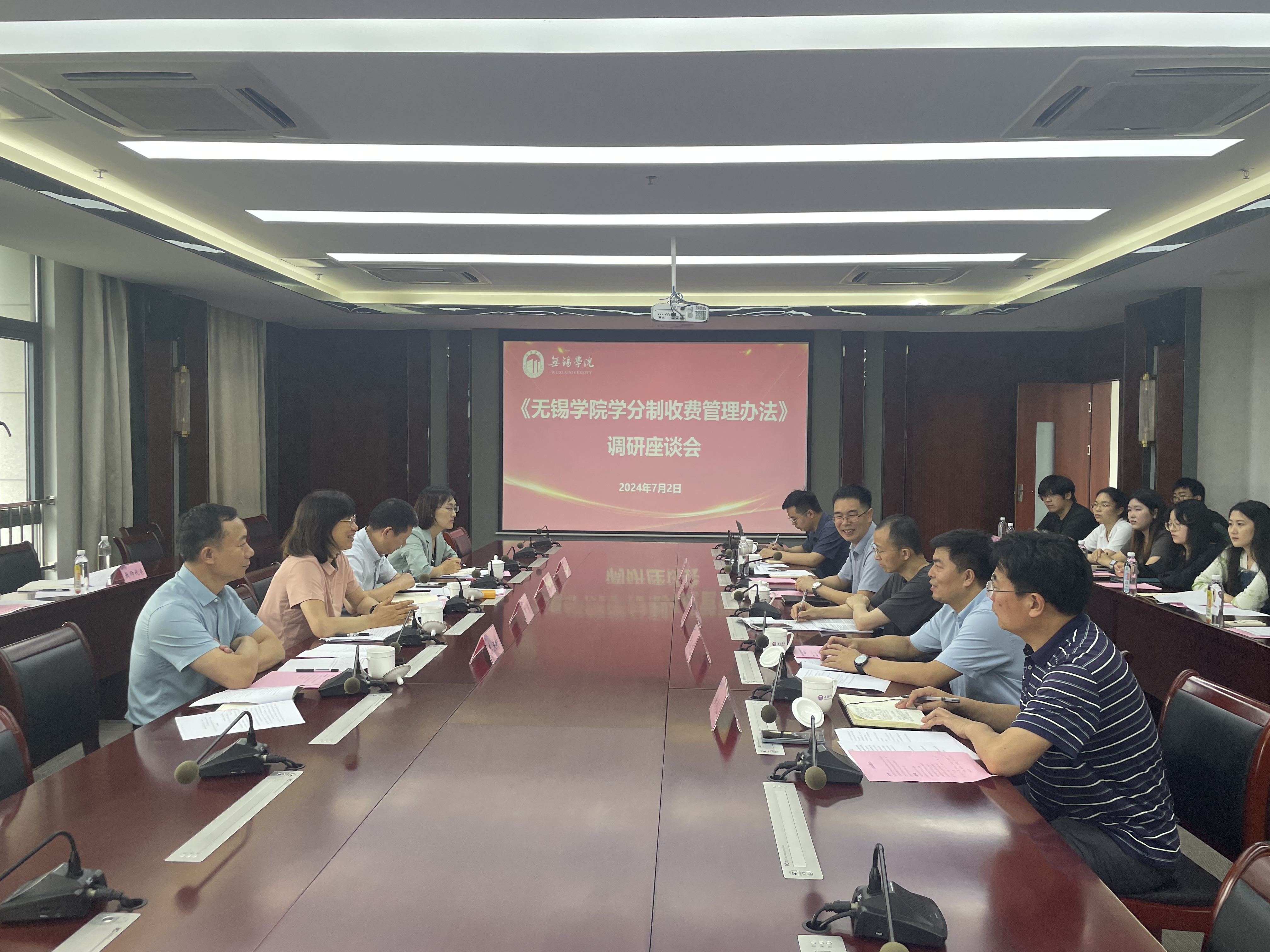 为推进我校学分制教学管理改革,提高学分制收费管理办法制定的科学性和透明度,7月2日下午,在行政楼525会议室召开了《无锡学院学分制收费管理办法》座谈会。省发改委收费管理和价格调控处二级调研员邢晋、四级调研员钱军、省教育厅财务资产处三级调研员高洪彬以及省财政厅综合处科长刘茜出席,我校党委副书记匡辉、教务处处长钱承山、学工处处长张灿龙、财务处处长孙振以及相关工作人员、二级学院师生代表参加了此次座谈会,会议由财务处处长孙振主持。